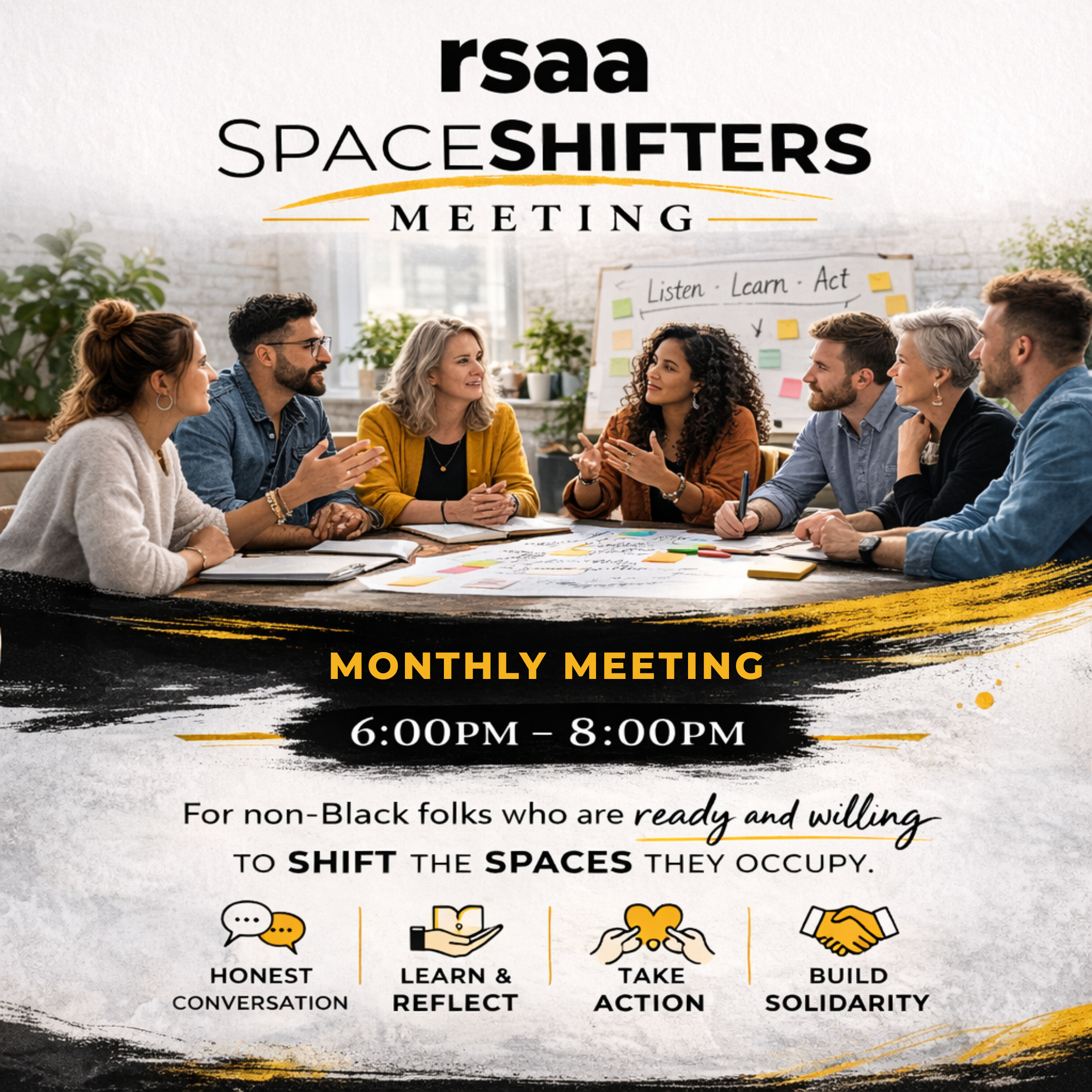 SpaceShifter meetings are intentional spaces for non-Black-bodied individuals committed to learning, unlearning, and taking meaningful action toward reparations and Black liberation. Rooted in accountability, these sessions explore anti-Blackness, privilege, and true solidarity. Come ready to listen, wrestle, and commit. Location will be sent closer to the event date.